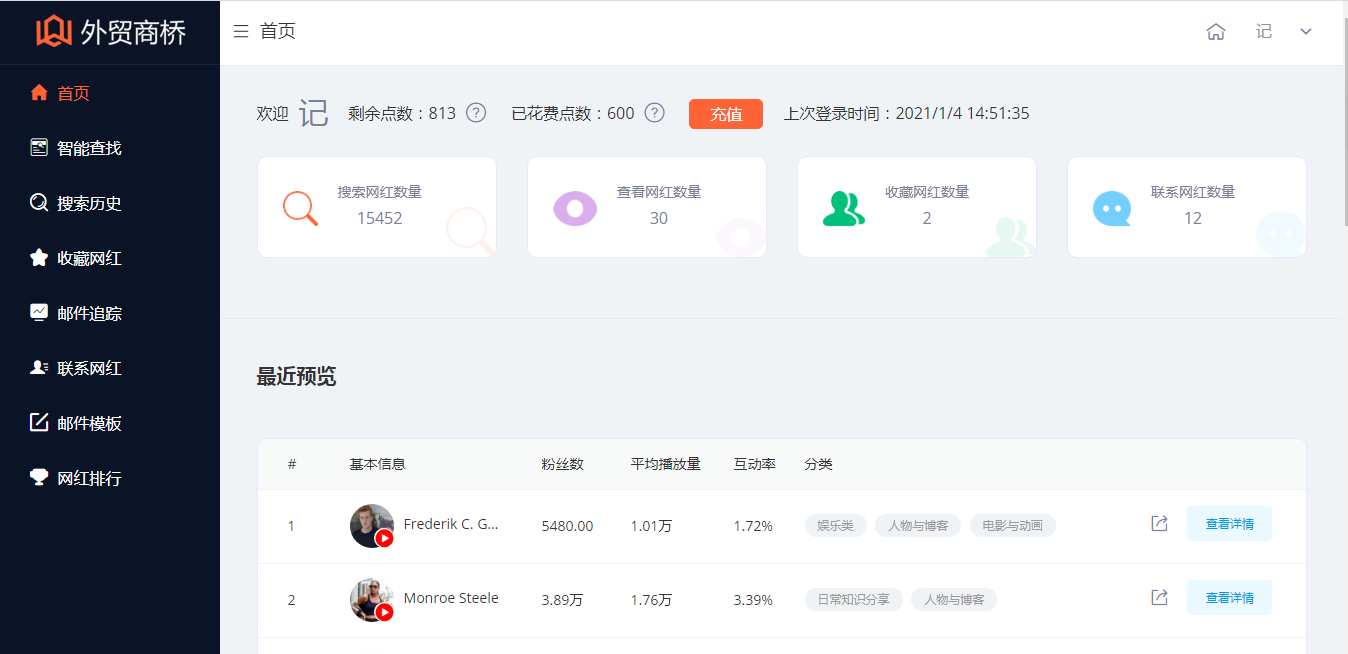 上节课我们了解了选择合作网红的五大判断标准,那这节课以shein这个独立站为案例给大家具体介绍根据五大判断标准如何通过外贸商桥网红营销系统寻找适合的网红。